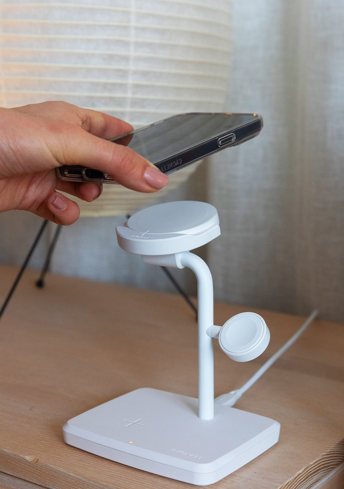Che tu voglia liberare il tuo comodino o la scrivania dell'ufficio, ChargeBase Qi2.0 è la soluzione ottimale. Il suo design versatile offre un'angolazione perfetta per le conference call o per goderti uno stile di vita senza cavi.