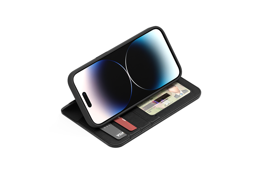 - 2 scomparti per carte di credito, custodia per documenti e tasca per contanti