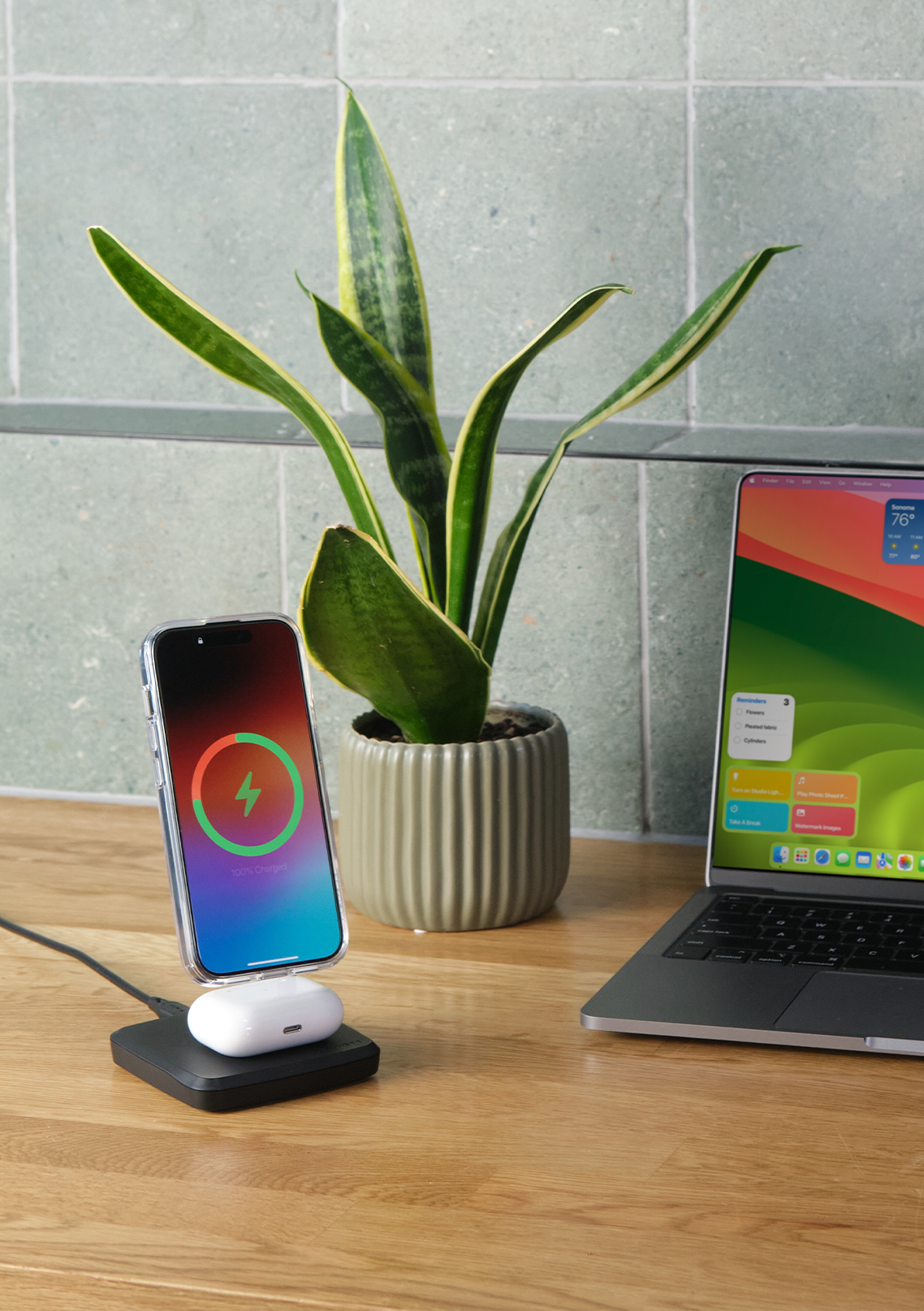 - Ricarica wireless 2-in-1 per telefono e auricolari